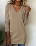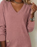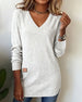 V-Neck Contrast Solid Color Long-Sleeved Top