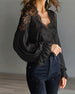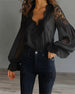 Lace Paneled Long-Sleeved V-Neck Blouse