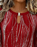 V-Neck Contrast Solid Color Long-Sleeved Top
