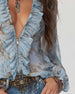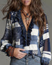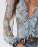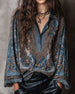 Retro Print V-Neck Lapel Sophisticated Blouse