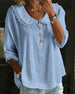 100% Cotton Wide-Collar Solid Color Casual Blouse