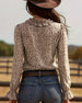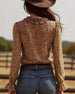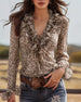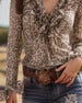 Ruffled V-Neck Leopard Print Blouse