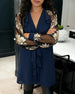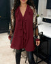 Deep V Ruffle Print Elegant Blouse