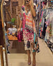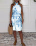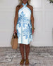 SPECIFICATIONS Style: Casual Material: Cotton Blends Dress Type: Shift dress Dress Length: Knee Length Neckline: Halter Pattern Type: Print Sleeve Length: Sleeveless Details: Backless,Lace Up Fit Type: Regular Season: Spring,Summer Occasion: Daily Package Includes: 1 x Dress SIZE TABLE Size Bust Length CM INCH CM INCH S 97 38.19 ...