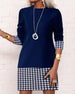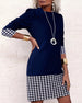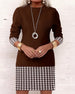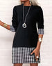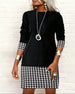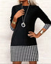 Houndstooth Paneled Long-Sleeved Dress