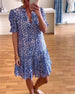 SPECIFICATIONS Style: Casual Material: Cotton Blends Dress Type: A-Line Dress Length: Knee Length Neckline: V neck_V Pattern Type: Floral Sleeve Type: Puff Sleeve Sleeve Length: Short Sleeve Details: Lace Up, Shirred Fit Type: Regular Season: Spring, Summer, Fall Occasion: Daily Package Includes: 1 x Dress SIZE TABLE Size Bust le...