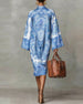 Elegant Three-Quarter Sleeve Printed Waist Dress
