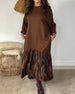 SPECIFICATIONS Style: Casual Material: Cotton Blends Dress Type: T-shirt Dress Length: Maxi Neckline: Round Neck Pattern Type: Print Sleeve Type: Dropped shoulder Sleeve Length: Long Sleeve Details: Patchwork,Irregular Fit Type: Loose Season: Fall,Winter Occasion: Daily Package Includes: 1 x Dress SIZE TABLE Size Bust Length CM IN...