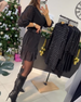 Houndstooth Paneled Long-Sleeved Dress