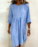 SPECIFICATIONS Style: Casual Material: 20% Linen 80% Cotton Dress Type: A-Line Dress Length: Knee Length Neckline: Round Neck Pattern Type: Solid Color Sleeve Type: Regular sleeve Sleeve Length: 3/4 Sleeve Details: Pocket Fit Type: Regular Season: Spring,Summer Occasion: Daily Package Includes: 1 x Dress SIZE TABLE Size Bust Le...