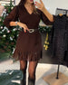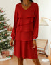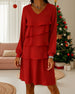 V-Neck Long Sleeve Tier Layer Dress