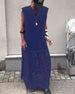 SPECIFICATIONS Style: Casual Material: Cotton Blends Dress Type: Shift dress Dress Length: Maxi Neckline: Round Neck Pattern Type: Solid Color Sleeve Length: Sleeveless Details: Patchwork Fit Type: Regular Season: Spring,Summer Occasion: Daily Package Includes: 1 x Dress SIZE TABLE Size Bust Length CM INCH CM INCH S 97 38.19 130 51.18...