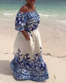 SPECIFICATIONS Style: Vacation Material: Cotton Blends Dress Type: A-Line Dress Length: Maxi Neckline: Off Shoulder Pattern Type: Print Sleeve Type: Regular sleeve Sleeve Length: Short Sleeve Fit Type: Regular Season: Spring,Summer Occasion: Daily Package Includes: 1 x Dress SIZE TABLE Size Bust Length CM INCH CM INCH S 97 38.19 130 5...