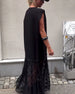 SPECIFICATIONS Style: Casual Material: Cotton Blends,Lace Dress Type: Shift dress Dress Length: Maxi Neckline: V neck_V Pattern Type: Solid Color Sleeve Type: Flare Sleeve Sleeve Length: 3/4 Sleeve Details: Patchwork,Pocket,Shirred Fit Type: Regular Season: Spring,Fall Occasion: Daily Package Includes: 1 x Dress SIZE TABLE Size Bust Lengt...