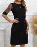 SPECIFICATIONS Style: Elegant,Party Material: Cotton Blends Dress Type: A-Line Dress Length: Knee Length Neckline: Round Neck Pattern Type: Solid Color Sleeve Type: Regular sleeve Sleeve Length: Half Sleeve Details: Patchwork Fit Type: Regular Season: Spring,Summer,Fall Occasion: Daily Package Includes: 1 x Dress SIZE TABLE Size ...