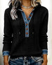 Color-Blocked Button Long-Sleeved Hooded