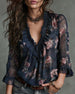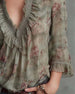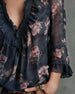 Ruffle-Hem Half-Zip Floral Print Blouse