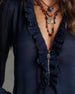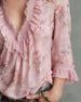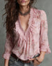 Vintage Lantern Sleeve Ruffled V-Neck Blouse