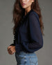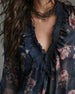 Ruffled Zipper Long-Sleeved Printed Blouse