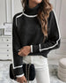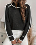 Casual color block hollow long sleeve pullover