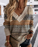 Geometric print V-neck long-sleeve sweater