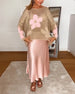 Round neck slim floral pullover sweater