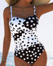 Color-Blocked Polka Dot One-Piece Swimsuit