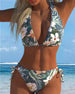 SPECIFICATIONS Style: Sexy Material: 15% Spandex,85% Polyester Occasion: Vacation Neckline: Halter Pattern Type: Print Top Type: Bikini Bra Type: Wireless Bra Bottom Type: Natural Fit Type: Regular Season: Spring,Summer Details: Drawstring Package Includes: 1 x Bikini SIZE TABLE Size Bust Waist Hip Under bust CM INCH CM INCH CM INCH CM INC...