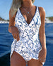 V-Neck Floral Print One-Piece Swimsuit