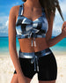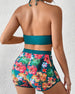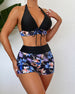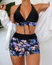 Casual Floral Print Shorts Three-Piece Swimsuit