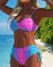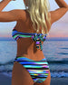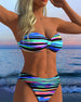 SPECIFICATIONS Style: Vacation Material: 15% Spandex,85% Polyester Occasion: Vacation Pattern Type: Rainbow Striped,Print Sleeve Length: Sleeveless Top Type: Bikini Bra Type: Wireless Bra Bottom Type: High Cut Fit Type: Skinny Details: Backless,Lace Up Package Includes: 1 x Bikini SIZE TABLE Size Bust Waist Hip Under bust CM INCH CM INCH C...