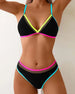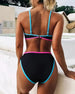 SPECIFICATIONS Style: Vacation Material: 15% Spandex,85% Polyester Occasion: Vacation Neckline: Spaghetti Straps Pattern Type: Color Block Sleeve Length: Sleeveless Top Type: Bikini Bra Type: Wireless Bra Bottom Type: Natural Fit Type: Regular Season: Spring,Summer Details: Backless Package Includes: 1 x Bikini SIZE TABLE Size Bust Waist Hip...