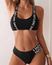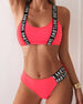 SPECIFICATIONS Style: Vacation Material: 15% Spandex,85% Polyester Occasion: Vacation Pattern Type: Letter Sleeve Length: Sleeveless Top Type: Bikini Bra Type: Wireless Bra Bottom Type: High Cut Fit Type: Skinny Details: Patchwork,Hollow Out Package Includes: 1 x Bikini SIZE TABLE Size Bust Waist Hip Under bust CM INCH CM INCH CM INCH CM I...