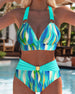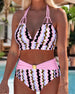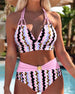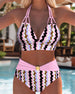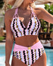 SPECIFICATIONS Style: Vacation Material: 15% Spandex,85% Polyester Occasion: Vacation Neckline: Halter Pattern Type: Print,Ripple Sleeve Length: Sleeveless Top Type: Bikini Bra Type: Wireless Bra Bottom Type: High Cut Fit Type: Regular Season: Spring,Summer Details: Backless,Lace Up Package Includes: 1 x Bikini SIZE TABLE Size Bust Waist Hip...