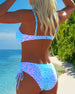 SPECIFICATIONS Style: Vacation Material: 15% Spandex,85% Polyester Occasion: Vacation Neckline: V neck_V Pattern Type: Print Sleeve Length: Sleeveless Top Type: Bikini Bra Type: Triangle Bottom Type: High Cut Fit Type: Skinny Details: Backless,Lace Up Package Includes: 1 x Bikini SIZE TABLE Size Bust Waist Hip Under bust CM INCH CM INCH CM...