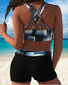 SPECIFICATIONS Style: Vacation Material: 15% Spandex,85% Polyester Occasion: Vacation Neckline: Spaghetti Straps Pattern Type: Plaid Sleeve Length: Sleeveless Top Type: Bikini Bra Type: Wireless Bra Bottom Type: Shorts Fit Type: Skinny Details: Drawstring Package Includes: 1 x Bikini SIZE TABLE Size Bust Waist Hip Under bust CM INCH CM INC...