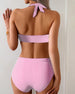 SPECIFICATIONS Style: Vacation Material: 15% Spandex,85% Polyester Occasion: Vacation Neckline: Halter Pattern Type: Striped Sleeve Length: Sleeveless Top Type: Bikini Bra Type: Wireless Bra Bottom Type: High Cut Fit Type: Regular Season: Spring,Summer Details: Backless,Lace Up,Bowknot Package Includes: 1 x Bikini SIZE TABLE Size Bust Waist ...