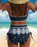 SPECIFICATIONS Style: Vacation Material: Cotton Blends Occasion: Vacation Neckline: Spaghetti Straps Pattern Type: Print Sleeve Length: Sleeveless Top Type: Bikini Bra Type: Wireless Bra Bottom Type: High Cut Fit Type: Regular Season: Spring,Summer Details: Backless,Lace Up Package Includes: 1 x Bikini SIZE TABLE Size Bust Waist Hip Under bu...