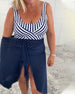 SPECIFICATIONS Style: Vacation Material:A: 85% Nylon, 15% Spandex; B: 100% Polyester Occasion: Vacation Neckline: Round Neck Pattern Type: Striped Sleeve Length: Sleeveless Top Type: One Piece Fit Type: Skinny Package Includes: 1 x One Piece,1 x Cover up SIZE TABLE Size Bust Waist Hip Under bust CM INCH CM INCH CM INCH CM INCH S 88 ...