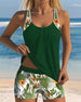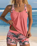 SPECIFICATIONS Style: Vacation Material: 15% Spandex,85% Polyester Occasion: Vacation Neckline: Spaghetti Straps Pattern Type: Leaves,Print Sleeve Length: Sleeveless Top Type: Tankini Bra Type: Wireless Bra Bottom Type: Shorts Fit Type: Regular Season: Spring,Summer Package Includes: 1 x Tankini SIZE TABLE Size Bust Waist Hip Under bust CM...