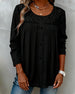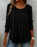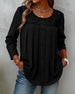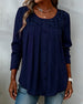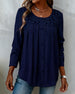 SPECIFICATIONS Top Type: Tops Style: Elegant Material: Cotton Blends Occasion: Daily Pattern Type: Solid Color Sleeve Type: Regular sleeve Sleeve Length: Long Sleeve Fit Type: Regular Season: Fall,Winter Details: Lace Package Includes: 1 x Top SIZE TABLE Size Bust Length CM INCH CM INCH S 97 38.19 65 25.59 M 101 39.76 66.5 26....