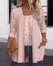 SPECIFICATIONS Top Type: Blouses Style: Casual Material: Cotton Blends Occasion: Daily Neckline: Round Neck Pattern Type: Solid Color Sleeve Type: Bat sleeve Sleeve Length: 3/4 Sleeve Fit Type: Regular Season: Spring,Summer Details: Patchwork,Lace Package Includes: 1 x Blouse SIZE TABLE Size Bust Length CM INCH CM INCH S 97 38.1...