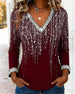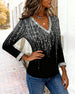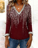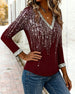 SPECIFICATIONS Top Type: Tops Style: Casual Material: Cotton Blends Occasion: Daily Neckline: V neck_V Pattern Type: Sequin,Color Block Sleeve Type: Regular sleeve Sleeve Length: Long Sleeve Fit Type: Regular Season: Fall,Winter Package Includes: 1 x Top SIZE TABLE Size Bust Length CM INCH CM INCH S 97 38.19 65 25.59 M 101 39....