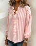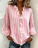 SPECIFICATIONS Top Type: Blouses Style: Casual Material: Cotton Blends Occasion: Daily Neckline: V neck_V Pattern Type: Striped Sleeve Type: Dropped shoulder Sleeve Length: Long Sleeve Fit Type: Regular Season: Spring,Fall Details: Ruffle Package Includes: 1 x Blouse SIZE TABLE Size Bust Length CM INCH CM INCH S 97 38.19 65 25.5...