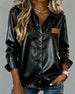 SPECIFICATIONS Top Type: Shirt Style: Chic Material: PU Leather Occasion: Daily,Street Neckline: Shirt Collar Pattern Type: Solid Color Sleeve Type: Regular sleeve Sleeve Length: Long Sleeve Fit Type: Regular Season: Fall,Winter Details: Buttons Package Includes: 1 x Shirt SIZE TABLE Size Bust Length CM INCH CM INCH S 97 38.19 6...