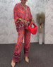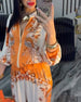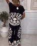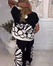 Temperament Long-Sleeved Printed Wide-Leg Suit