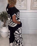 Printed Round Neck Long Dress Casual Top Two Piece Set