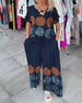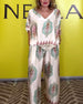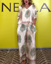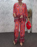 Temperament V-Neck Cashew Flower Wide-Leg Set