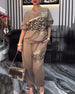 Casual Short-Sleeved Leopard Print Shorts Suit