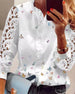 Elegant Solid Half Neckline Long Sleeve Lace Top
